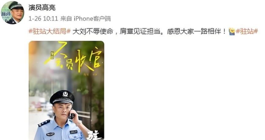 高亮生前最后一篇发文,是为电视剧《驻站》进行宣传。