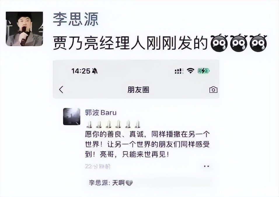 正是因为是贾乃亮经纪人发的朋友圈,随后又被截图,还传到了网上,声称是贾乃亮经纪人发的,这才导致网友错把“亮哥”误解为“贾乃亮”。